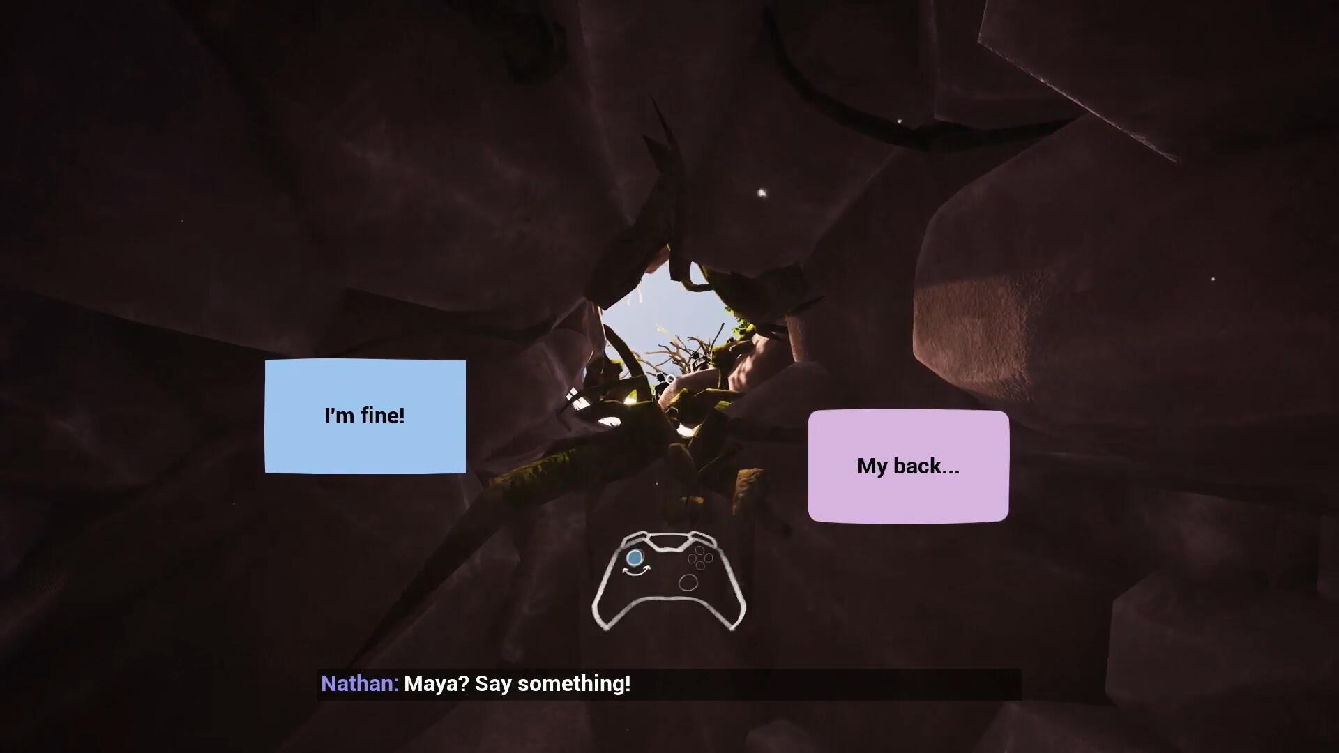 Here is a mockup for the dialogue interaction I designed, wich allowed to spatially place the possible answer in the environment, and to try out a seamless and meaningful UI that blend with the rest of the experience.